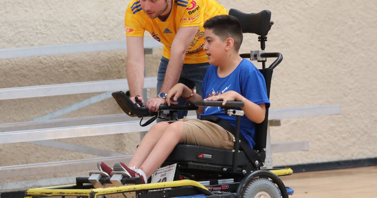 Este domingo, entrenadores y jugadores de Tigres Powerchair acudieron al GIMUSA para presentar esta disciplina a los juveniles saltillenses y sostener diversos ejercicios prácticos. Esta disciplina enfrenta a dos equipos de cuatro integrantes cada uno, se juegan dos tiempos de 20 minutos con periodo de descanso.