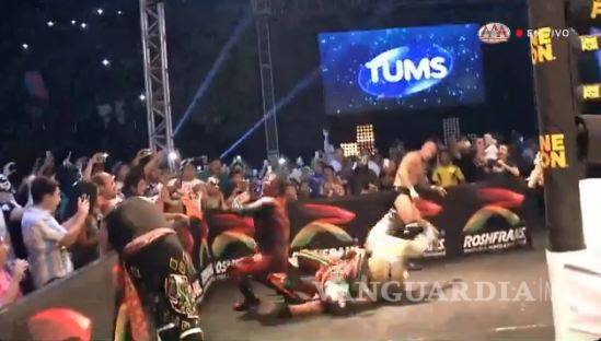Mientras se realizaban las acciones afuera del cuadrilátero, Aerostar subió hasta lo más alto de las luminarias para caer contra sus rivales, sin embargo no lo hizo del todo bien y tuvo que salir en camilla.
