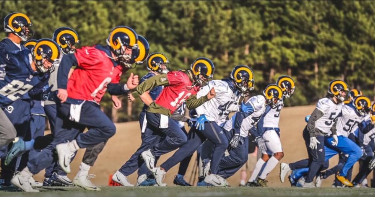 Los Rams practicaban en jerseys, sudores (con algunas almas valientes con pantalones cortos) y cascos. Usaron pads una vez la semana pasada.