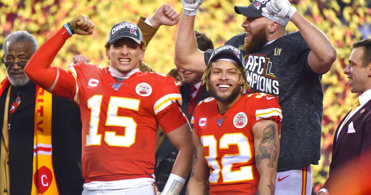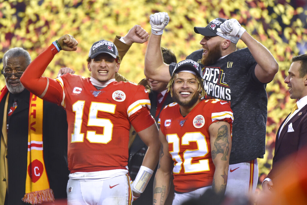 Los Chiefs arrancaron la temporada como favoritos por consenso para ganar el Super Bowl se sobrepusieron a una lesión de rodilla a mitad de la campaña del mariscal de campo Patrick Mahomes y tuvieron remontada consecutivas en los playoffs para vencer a los Texans y Titans para alcanzar el primer Super Bowl de la franquicia desde 1969.