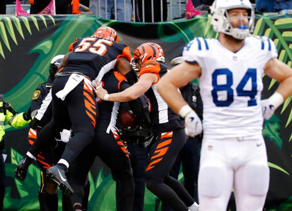 El segundo touchdown de Brissett puso arriba a los Colts (2-6) para una victoria fuera de casa. Pero Dunlap acabó amargándoles al desviar el balón con 6:58 y darle la ventaja definitiva a Cincinnati en un partido en el que la delantera cambió de manos en cuatro ocasiones.