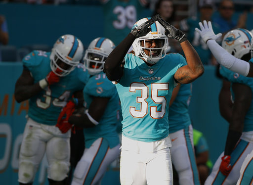 Xavien Howard interceptó un pase y devolvió el balón 30 yardas para una anotación que coronó una estupenda tarde de la defensiva de los Dolphins de Miami, quienes derrotaron el domingo 35-9 a los Broncos de Denver y les endilgaron su octava derrota consecutiva.