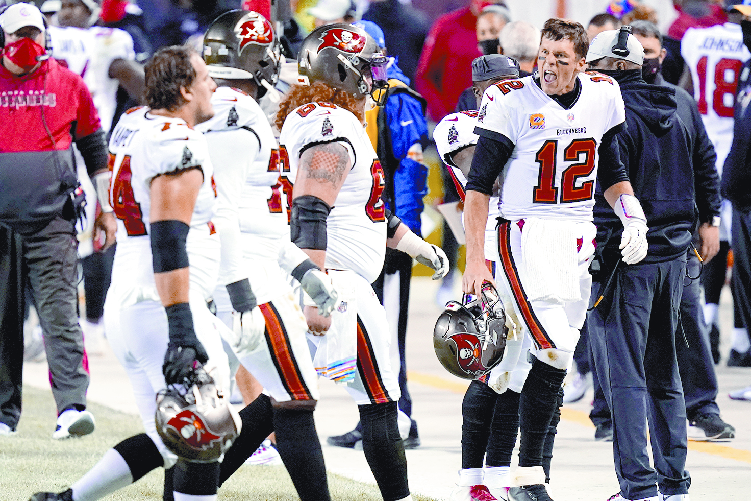 En segunda oportunidad y 10 por avanzar, en la yarda 37 de los Bucs, Brady encontró al corredor Ke’Shawn Vaughn, quien avanzó 4 yardas hasta la 41. En tercera, Brady no pudo conectar con Rob Gronkowski, con 42 segundos en el reloj.