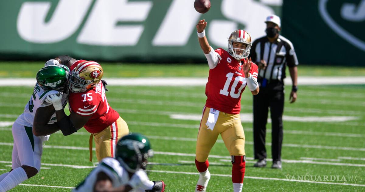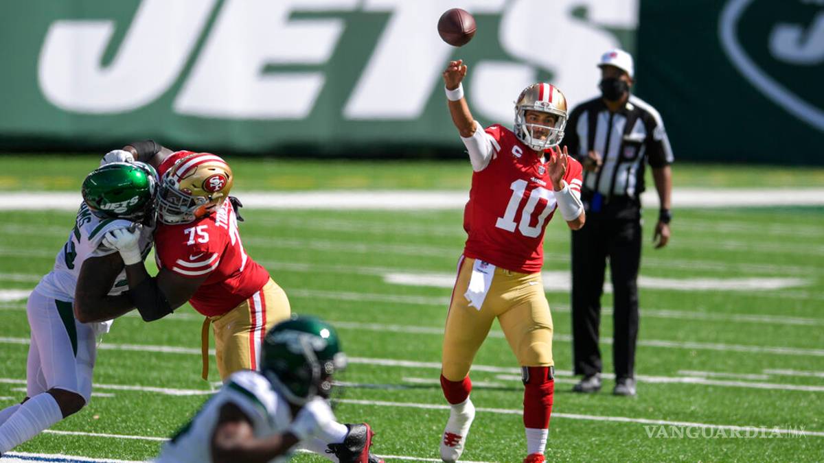 Garoppolo lanzó para tres mil 978 yardas y 27 pases de anotación la temporada pasada y guio a los Niners a 13 triunfos. En seis periodos esta temporada estaba con 33 de 49 pases completos y 390 yardas, cuatro touchdowns y sin intercepciones.