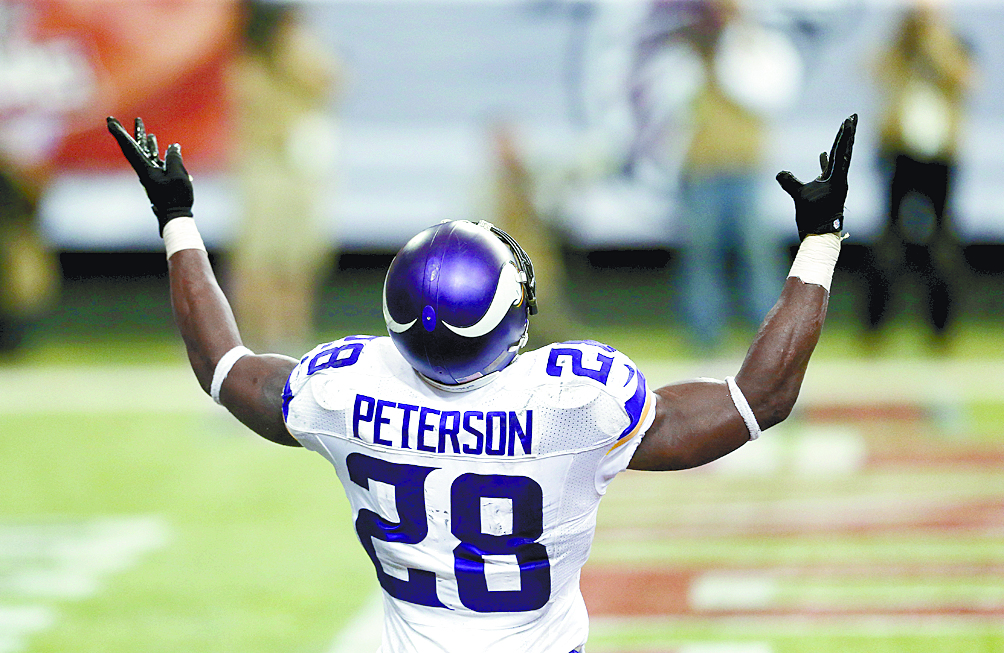 La máxima esperanza de triunfo para Minnesota es Peterson, el mejor corredor de esta temporada con mil 182 yardas en 245 acarreos, ocho de ellos para anotación, luego que su ofensiva aérea, con Teddy Bridgewater como quarterback, es la segunda peor de la NFL.