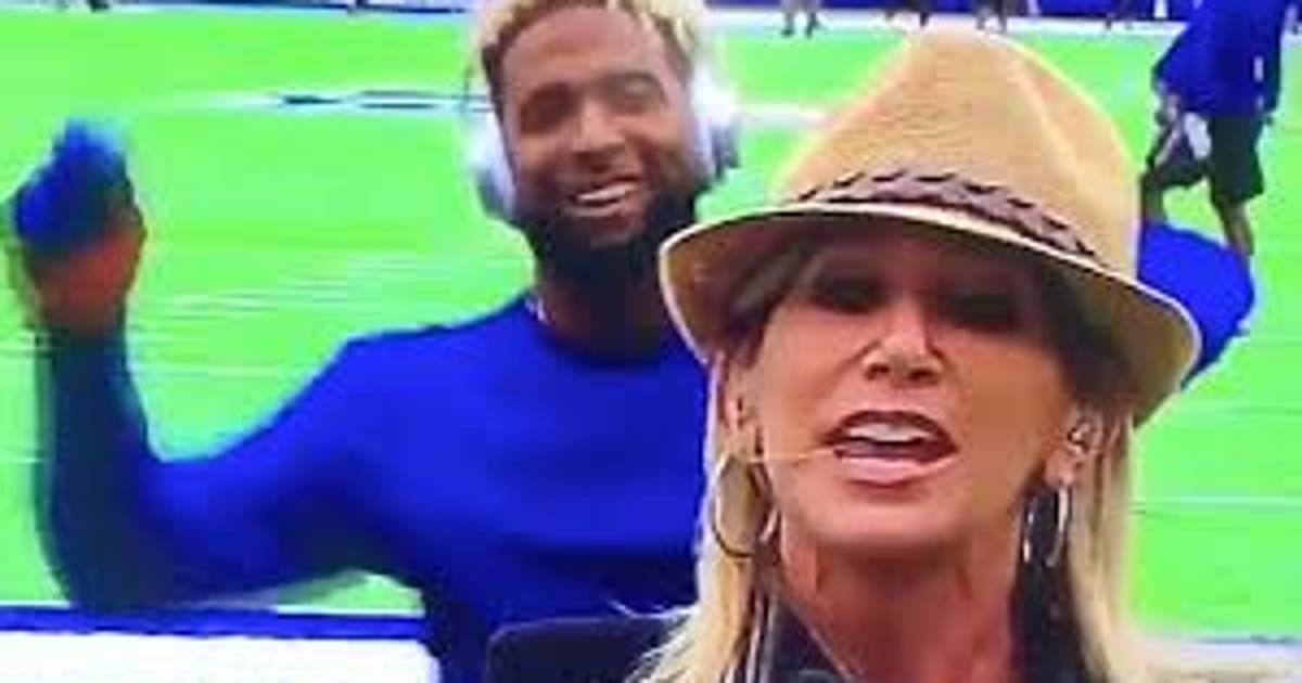 Beckham aprovechó que la reportera estaba de espaldas dando información del partido cuando el receptor de Nueva York comenzó a bailar atrás de ella.