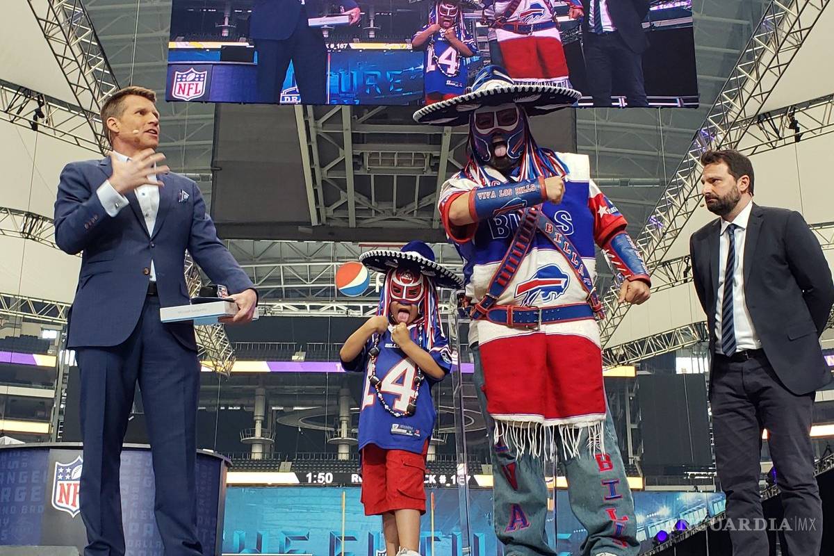 "Pacho Billa", que llevaba puesto un sombrero de charro, un sarape y máscara de luchador, todo en alusión a los Bills, subió al escenario para dar el nombre del próximo jugador de Buffalo.