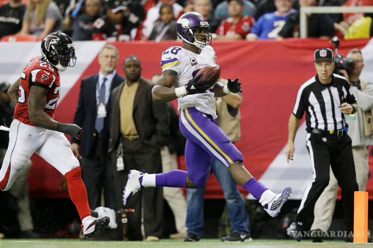 Atlanta.- El corredor estelar Adrian Peterson superó al legendario O.J. Simpson, consiguió 158 yardas por tierra y anotó dos veces en la victoria a domicilio de los Vikings de Minnesota por 10-20 sobre los Falcons de Atlanta, en la duodécima semana de la Liga Nacional de Fútbol Americano (NFL).