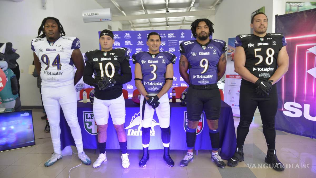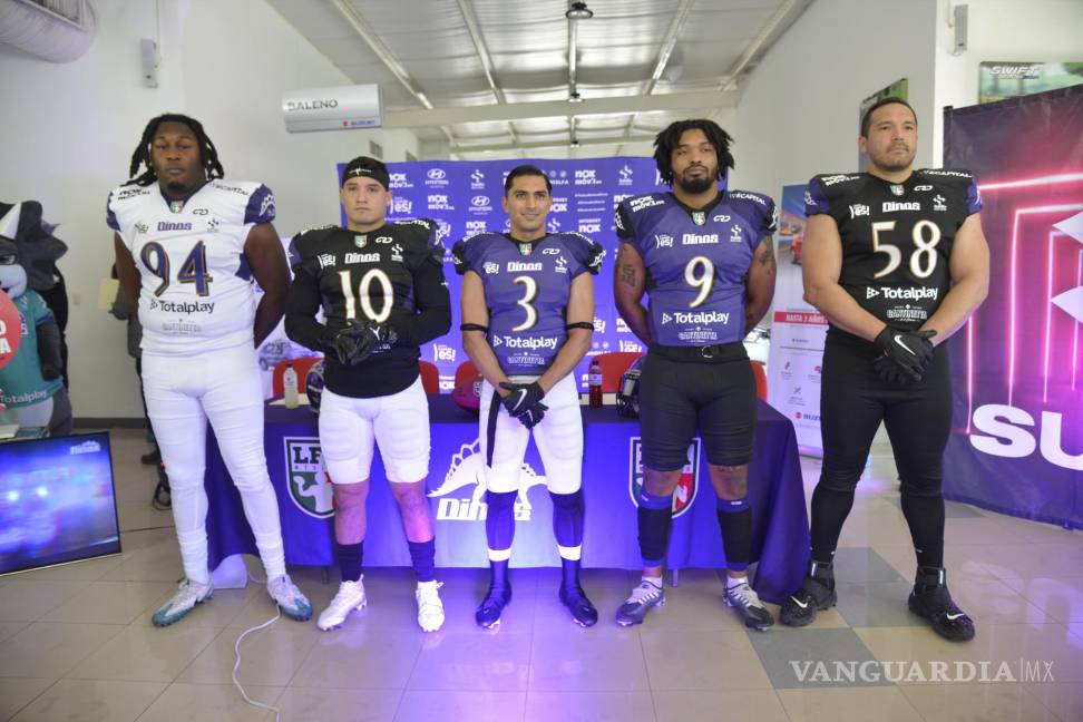 SALTILLO.- El equipo de casa, Dinos de Saltillo, presentó a los aficionados los uniformes que estará portando durante su participación en la Temporada 2023 de la Liga de Fútbol Americano Profesional (LFA), con una combinación de colores negro-morado-blanco.