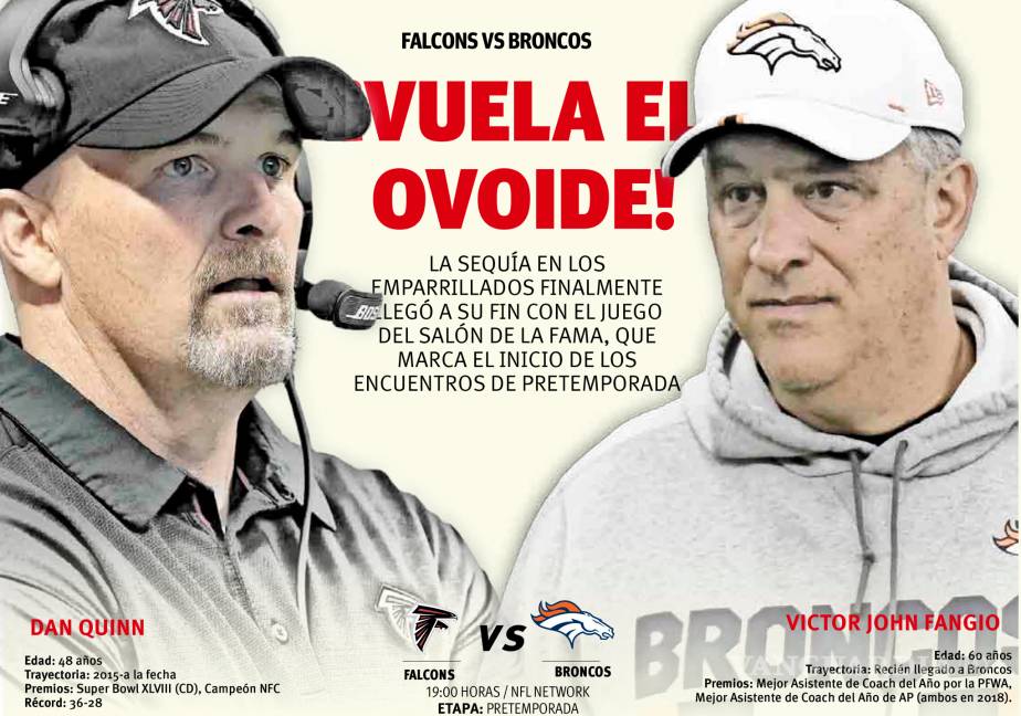 Pero primero, se da pie a la pretemporada, que inicia con el tradicional Juego del Salón de la Fama, que disputarán los Falcons de Atlanta ante los Broncos de Denver.