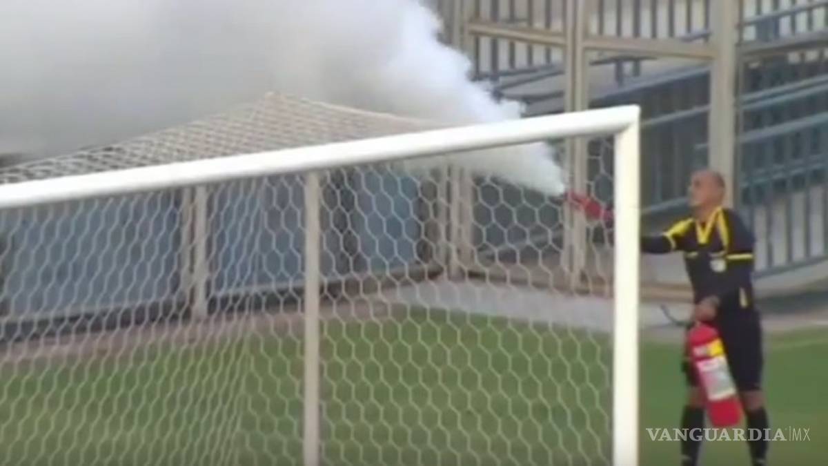 Árbitro utiliza extintor en pleno juego para espantar avispas