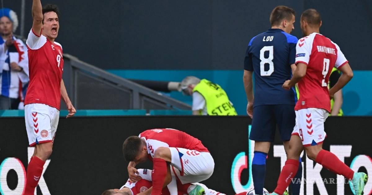 Eriksen, jugador de Dinamarca, cayó al césped en el minuto 43 y tras ser atendido fue sacado del terreno de juego en camilla.