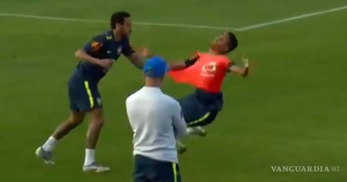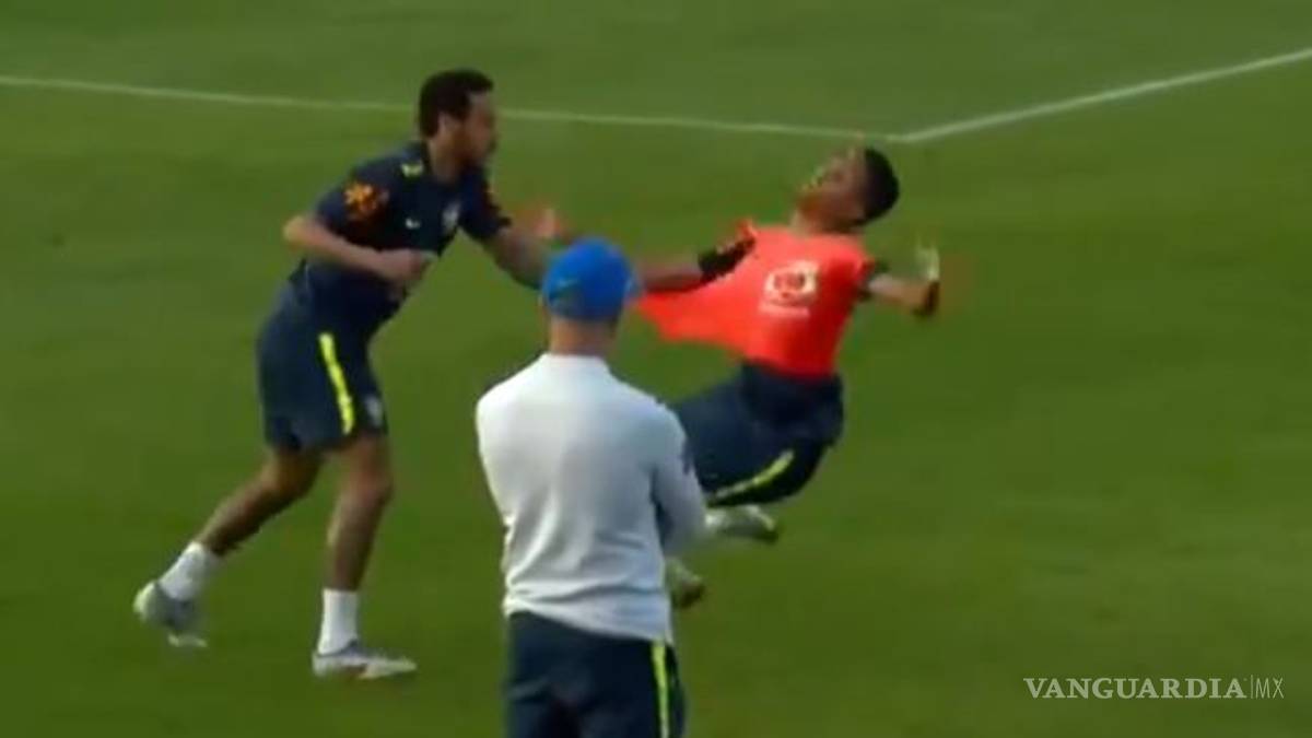 Durante la práctica, el juvenil de la Sub 19, Weverton, tenía el balón y tras la presión de Neymar, le tiró un "caño" al del PSG que reaccionó jalando la casaca de su compañero y tirándolo al piso.