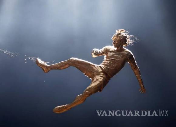 En “In A Way, Inmortal” las imágenes muestran a Cruyff saliendo del agua, cubierto de oro y elevándose en el aire para golpear el balón con el exterior de su pie derecho.