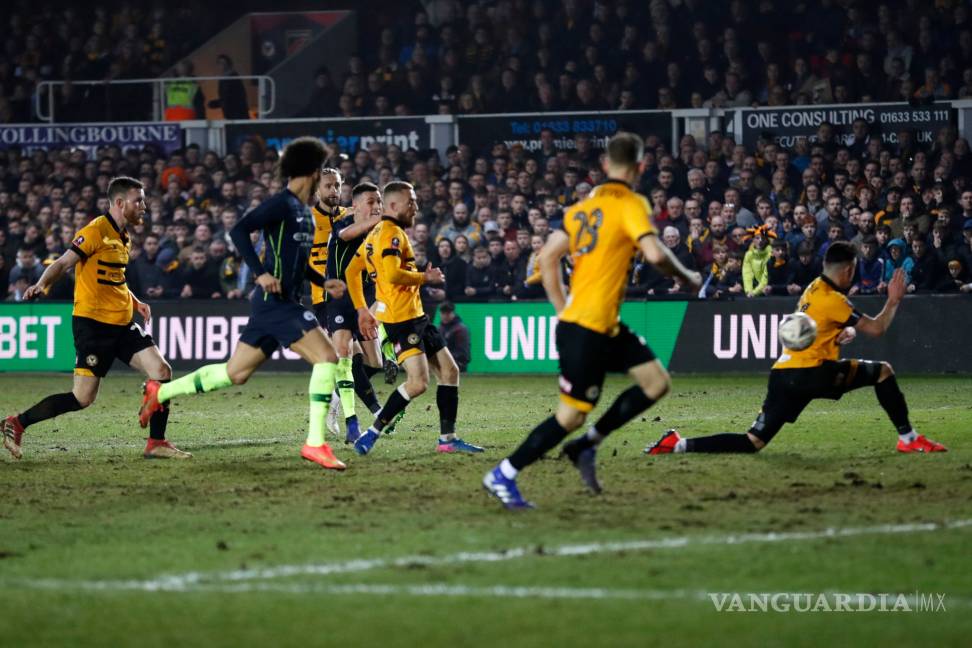 El triunfo de City no fue tan fácil como indica el abultado marcador. Los de Manchester, que venían de golear a Chelsea 6-0 en la Liga Premier, tuvieron problemas para montar su ataque en un campo que en muchos lugares tenía más barro que césped. Newport no solo pudo mantener su arco invicto en el primer tiempo sino que tuvo la mejor oportunidad en un cabezazo de Tyreeq Bakinson a los 14, frustrado por una espectacular salvada de Ederson.