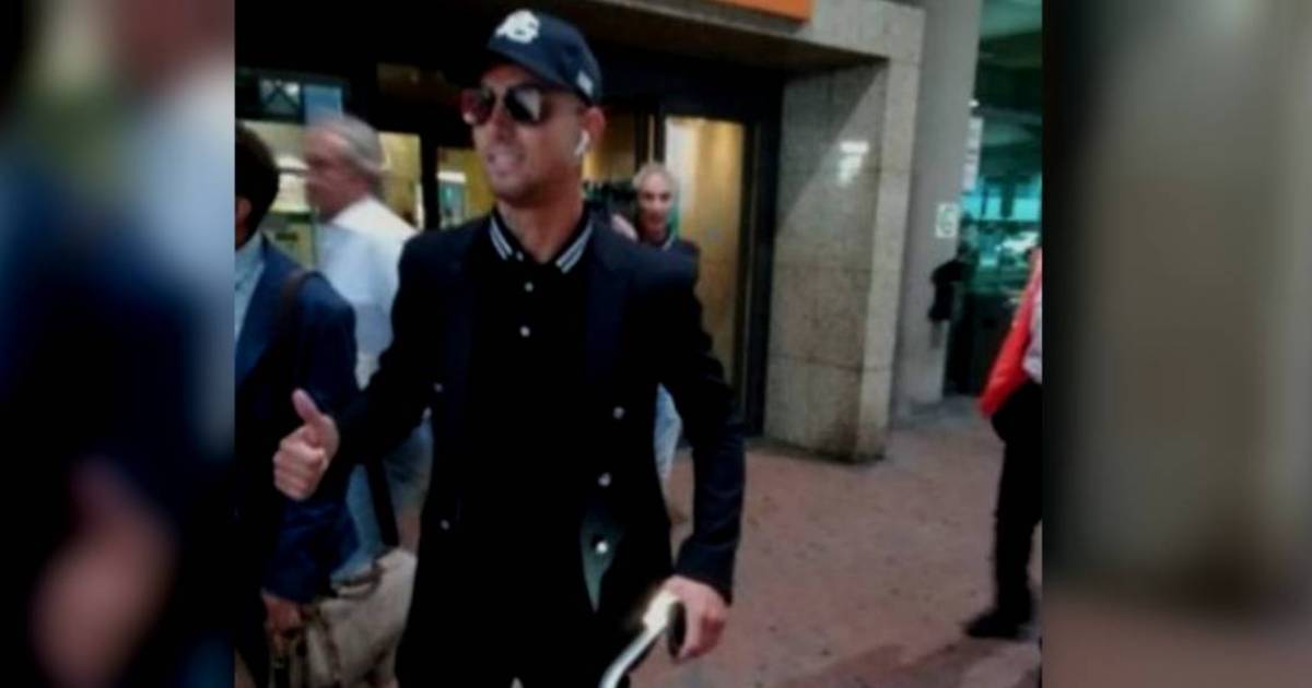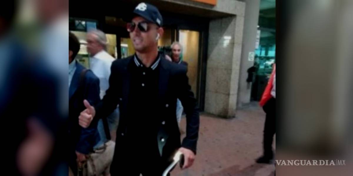 El falso Cristiano salió de los pasillos del Aeropuerto con gorra y lentes por lo que la gente enloqueció.