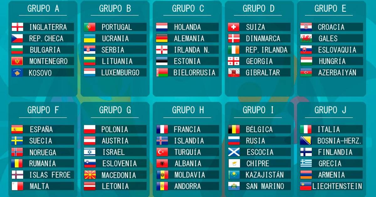 Portugal, actual campeona continental se medirá en el grupo B a Ucrania, Serbia, Lituania y Luxemburgo, mientras que Suiza, gran sorpresa de la nueva competición de la UEFA, tendrá como rivales a Dinamarca, la República de Irlanda, Georgia y Gibraltar.