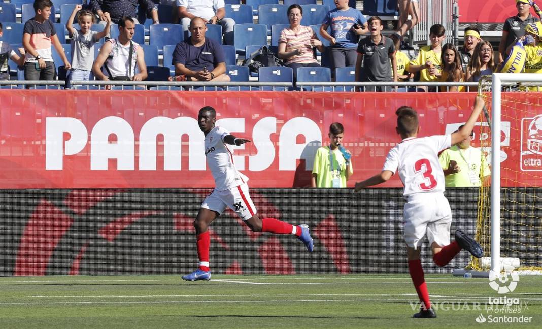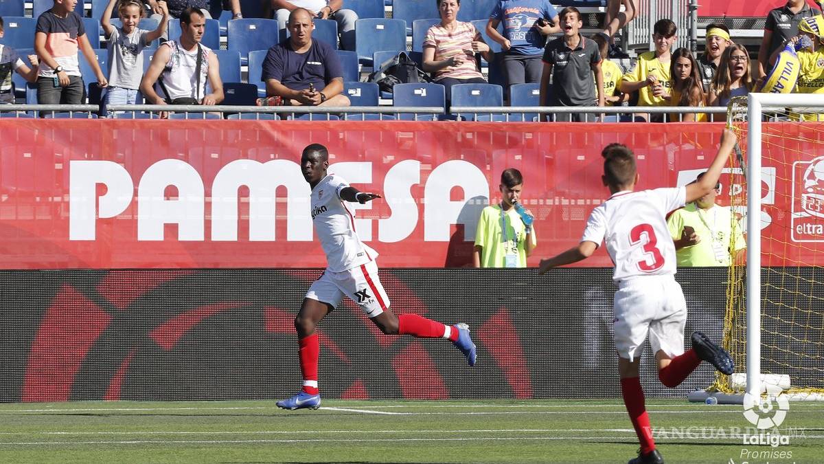 Ibrahima Sow, delantero de 12 años que milita para el Sevilla, sorprendió a propios y extraños por sus 1.75 metros de estatura y su corpulencia, en el duelo donde los andaluces enfrentaban al Villarreal.