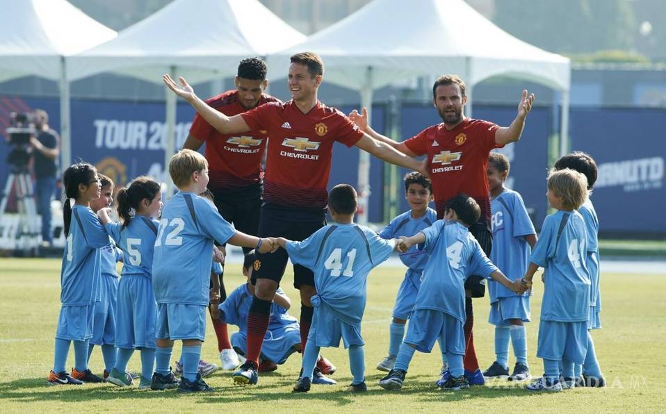 Tres jugadores del Manchester United se enfrentaron a 100 niños en un duelo amistoso, que terminó con victoria para los elementos de los Red Devils.