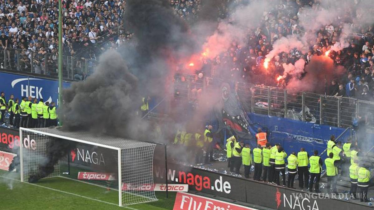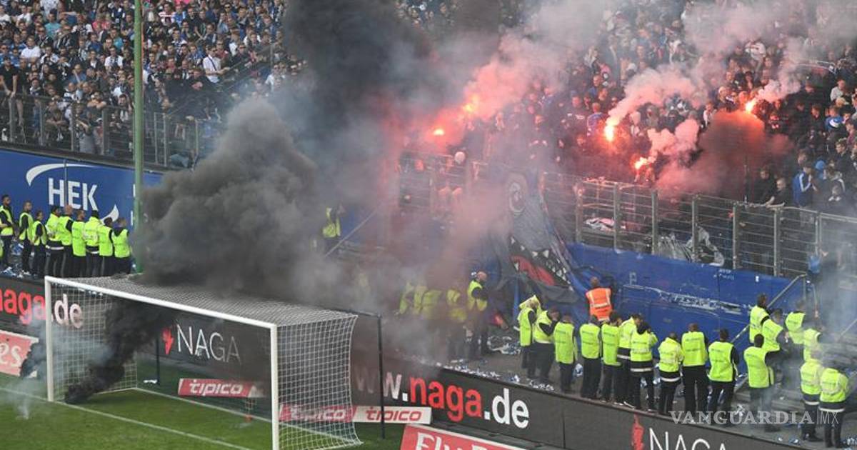 Los hinchas del Hamburgo bombardearon la portería del Borussia con petardos, provocando un incendio.