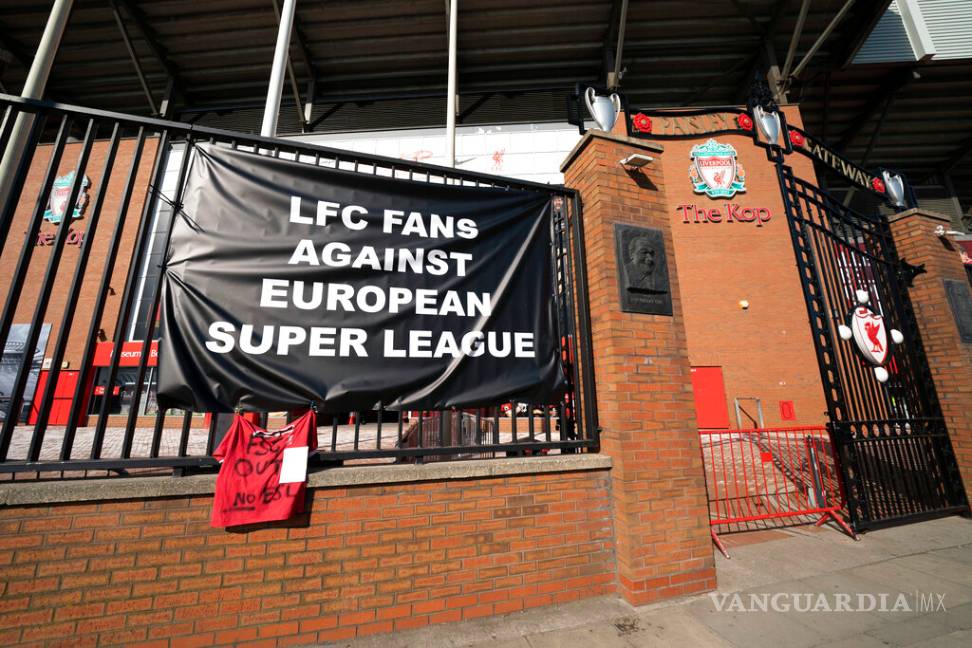 Fanáticos del Liverpool, Manchester United y Chelsea, colocaron pancartas contra la creación de la Superliga de Europa.