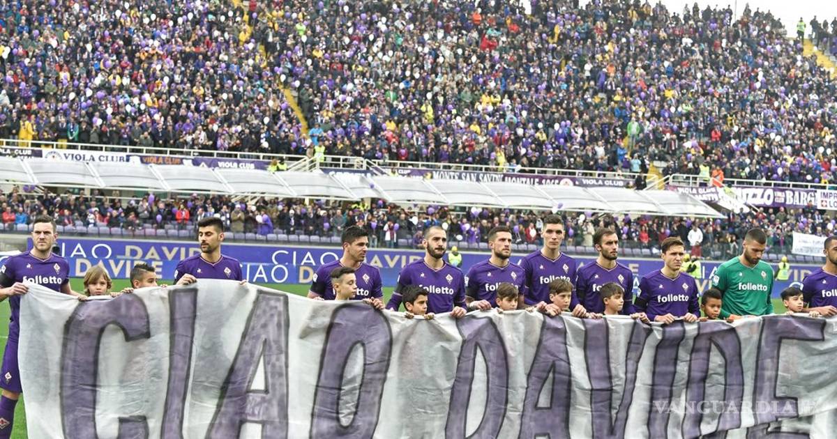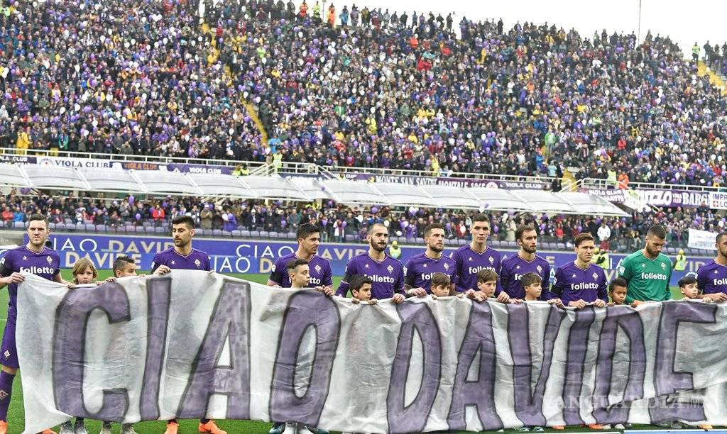 Cuando el reloj marcó los 13 minutos de partido, todos los futbolistas pararon de jugar y la afición de la curva Fiesole, la parte más caliente de la hinchada "viola", exhibió un mosaico de color morado con el texto "Davide 13".