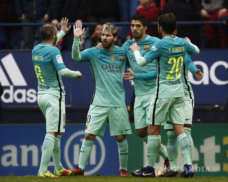 El conjunto catalán encerró cada vez más atrás a Osasuna y al cuarto de hora desequilibró en una triangulación entre Messi, Jordi Alba y Luis Suárez, con gol del uruguayo en posible fuera de juego (0-1, m.59).