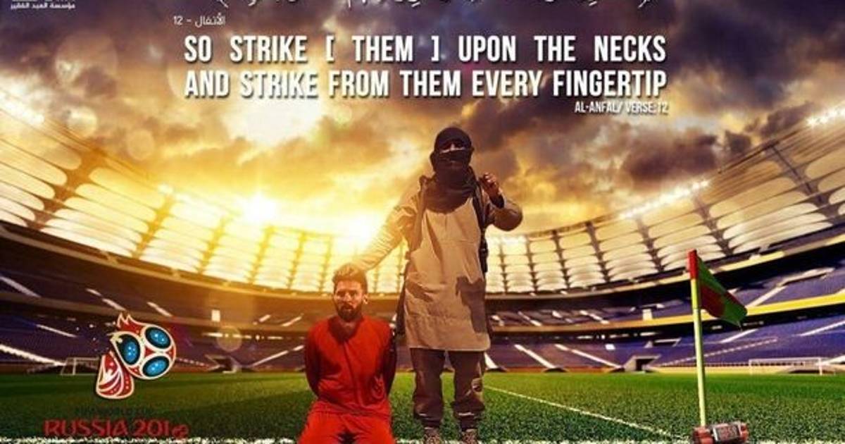 Nuevamente ISIS ha lanzado una amenaza de llevar a cabo un atentado en el próximo Mundial de Rusia 2018 al publicar una fotografía en donde se aprecia un jihadista sometiendo en una cancha de futbol al astro argentino Lionel Messi.