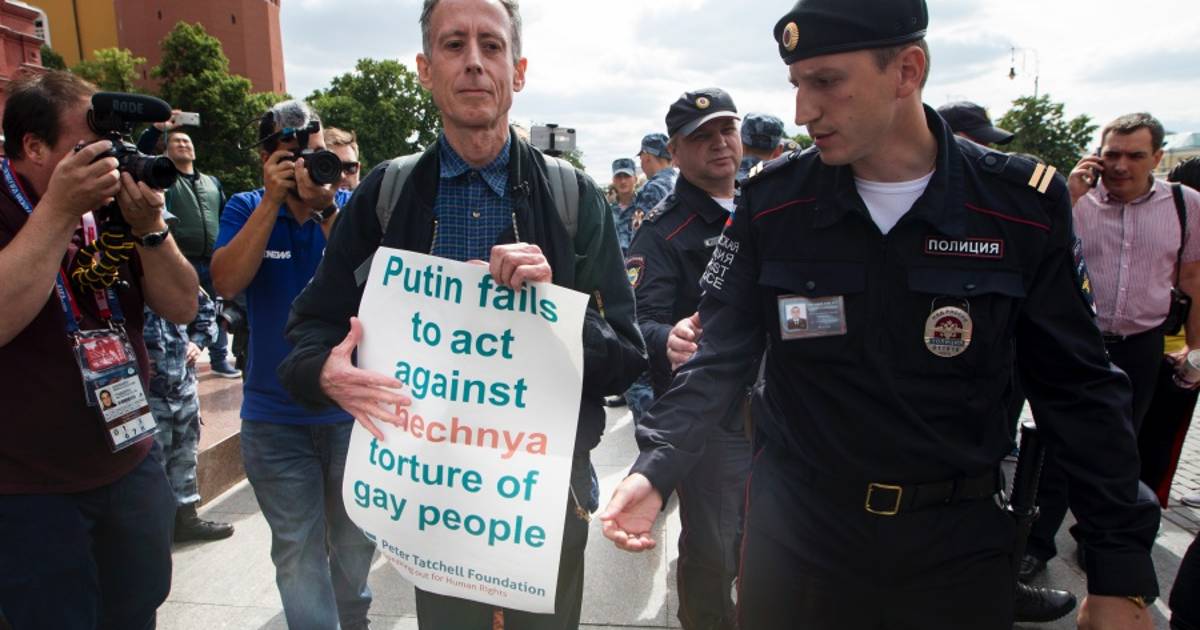 La protesta de Tatchell hacía referencia a la deportación a principios de 2017 de decenas de hombres homosexuales o supuestamente homosexuales en la república de Chechenia, en el norte del Cáucaso, que tiene un Gobierno autoritario. Al menos tres de esos hombres habrían sido asesinados.