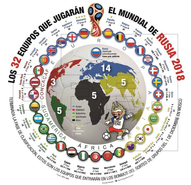 La resolución de la repesca intercontinental entre Perú y Nueva Zelanda ha puesto fin a la larga fase de clasificación para el Mundial de Rusia 2018, que ha deparado sonoras eliminaciones, regresos muy sonados a la gran cita y dos estrenos en estas lides, los de Panamá e Islandia.