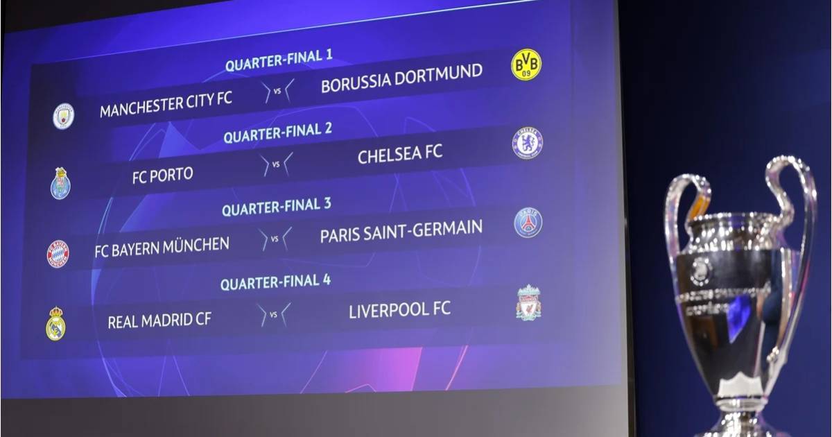 La UEFA organizó un sorteo puro -los ocho clubes podían enfrentarse- que además determinó los cuadros para las semifinales. El ganador del duelo entre el Real Madrid y el Liverpool jugará con el vencedor del Porto-Chelsea.