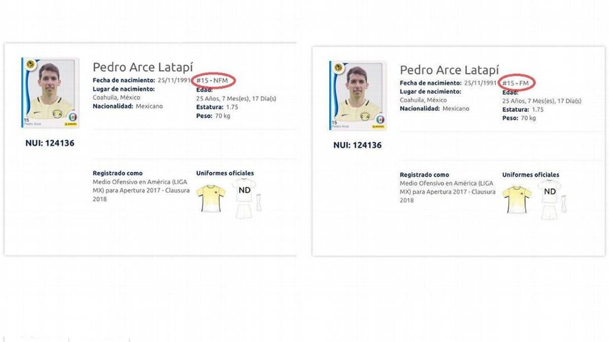 La Liga Bancomer MX cambió el estatus de Pedro Arce, refuerzo del América, de 'no formado en México' a 'formado en México' minutos después de que ESPN Digital publicara que el recién llegado de Grecia salía registrado en la primera categoría.