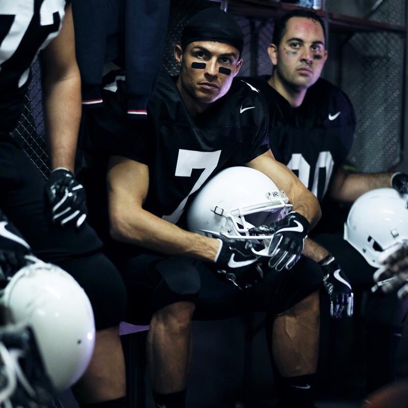 El delantero portugués lució en una foto con un uniforme de futbol americano