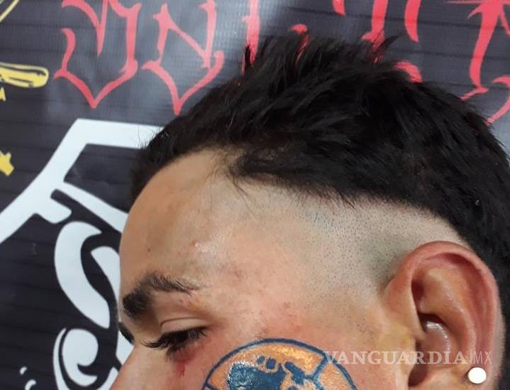 Saltillo.- Es común que entre los aficionados al futbol, el fanatismo por algún equipo sea llevado a plasmarse un tatuaje, pero éste aficionado al américa lo hizo en la cara.