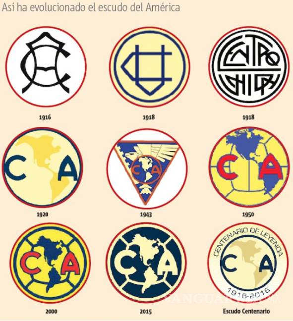 Faltan 2 días para el centenario del América, el equipo más popular en el futbol mexicano. Y en 100 años han cambiado su escudo en 9 ocasiones.