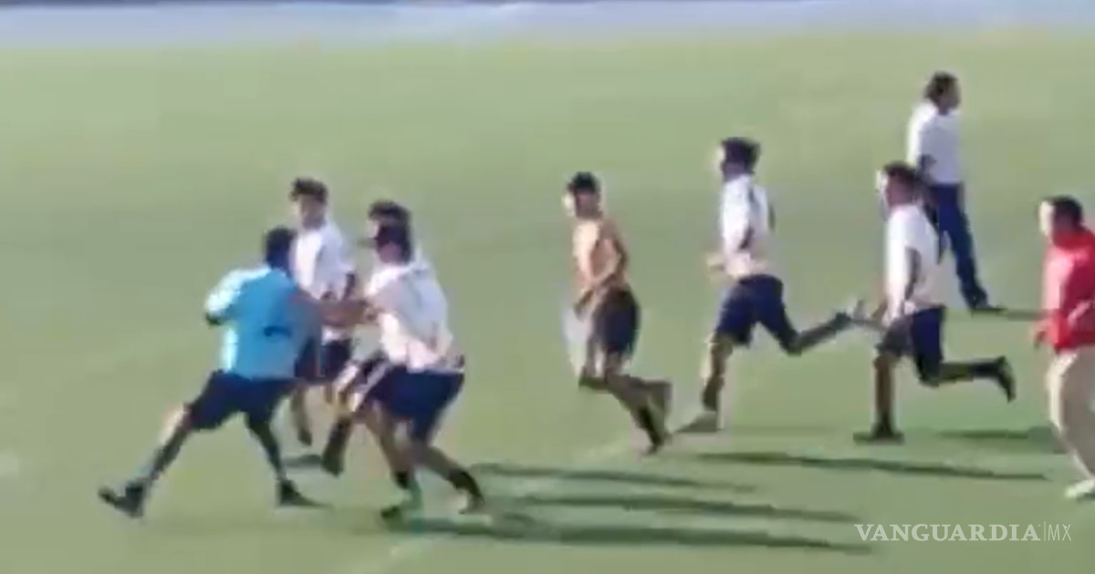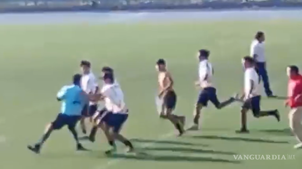Según se aprecia en un video que ya circula entre estudiantes y padres, varios jugadores y miembros del IMARC rodearon al árbitro en cuanto se decretó el final. En la grabación se ve cómo el silbante intenta avanzar, pero un grupo lo encara, le grita y lo empuja mientras otras personas intentan frenarlos. La escena se vuelve un tumulto: manoteos, jalones, empujones y un árbitro que busca salir de la zona mientras la situación se descontrola.