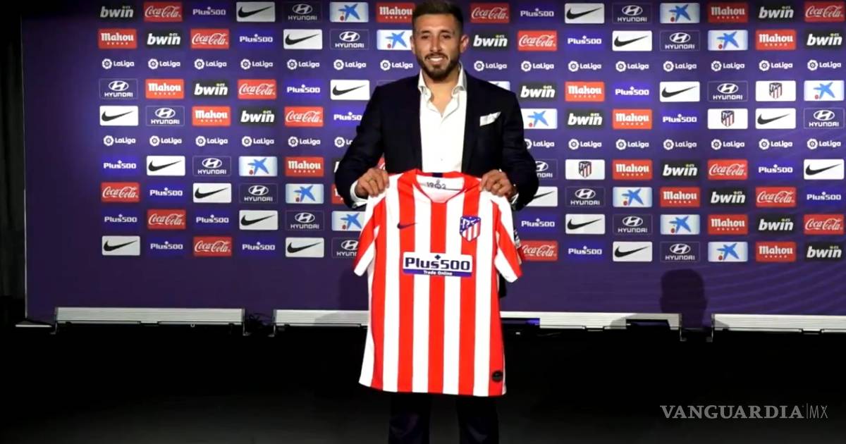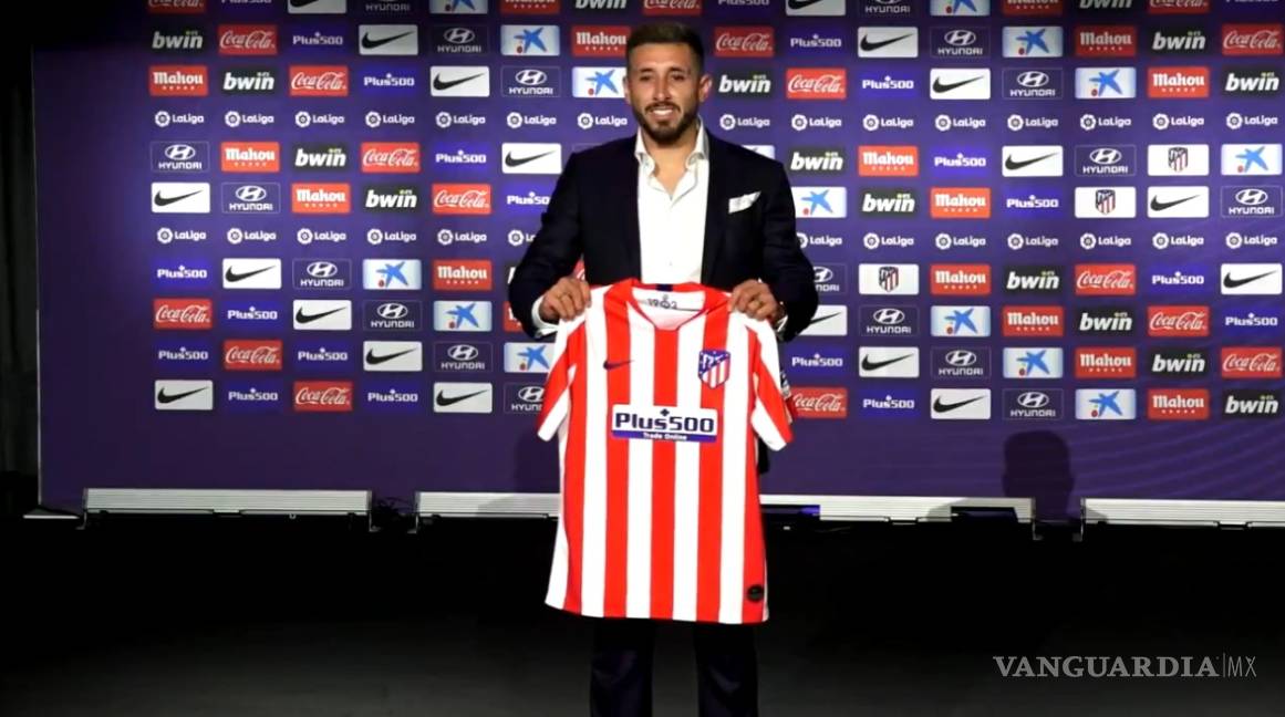 El mediocampista mexicano posó con su nueva jersey y dio conferencia de prensa como nuevo integrante del cuadro colchonero