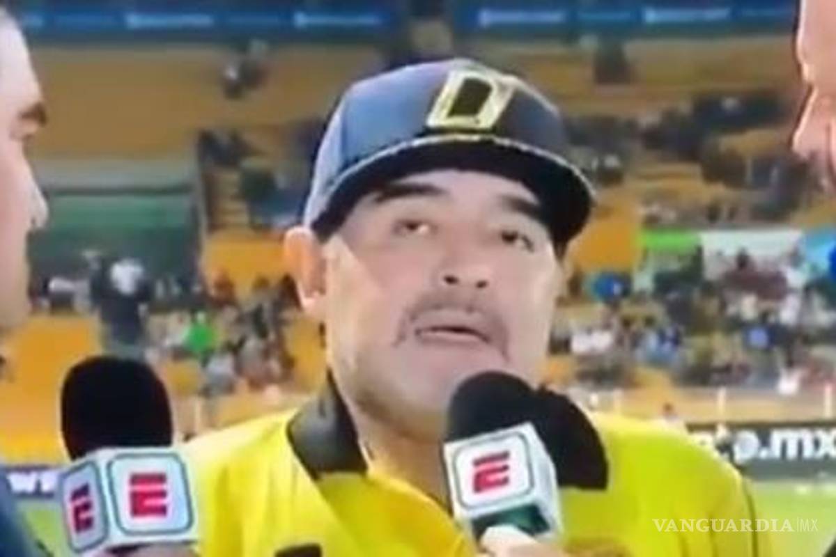 La noche de este miércoles después de que el equipo Dorados de Sinaloa, que dirige el argentino venciera 2-0 a Juárez y se posicionara en las semifinales del Ascenso MX, el "Pibe de oro" protagonizó un momento que se volvió viral por la dificultad que tuvo para dar una entrevista.