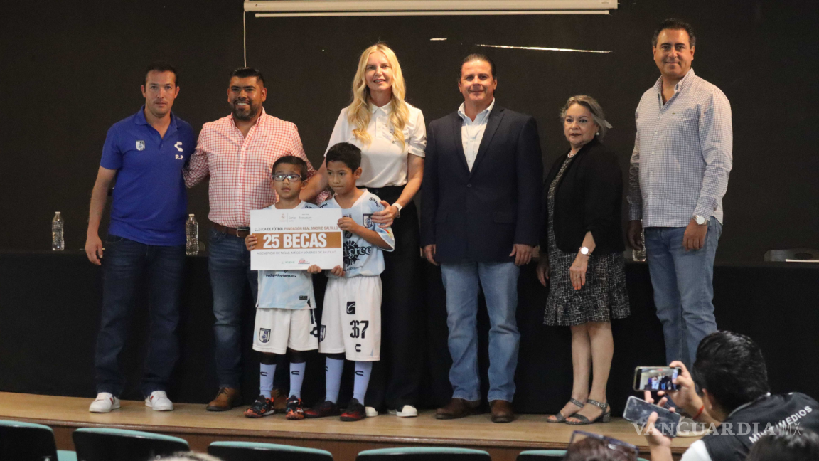 En una ceremonia celebrada hoy, las Clínicas de Fútbol de la Fundación Real Madrid, representada por Elizandra Bonatto, entregaron 25 becas deportivas a alumnos del equipo Querétaro FC Saltillo. Este evento, realizado en colaboración con el ayuntamiento de Saltillo, destaca el compromiso de la Fundación y las autoridades locales por fomentar el desarrollo deportivo entre los jóvenes de la región.
