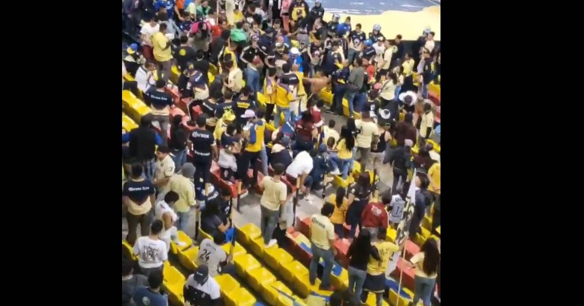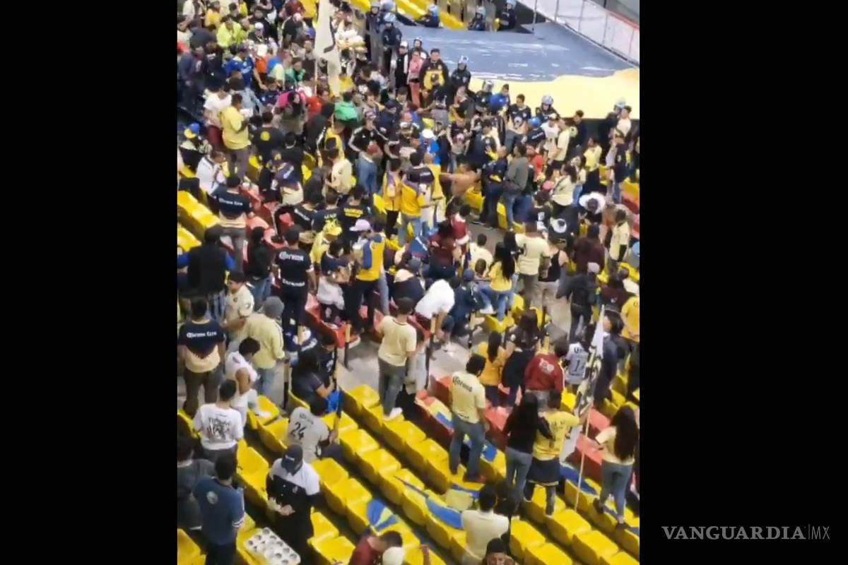 En redes sociales aparecen videos donde gente de amarillo se golpea en la cabecera norte del Estadio Azteca.