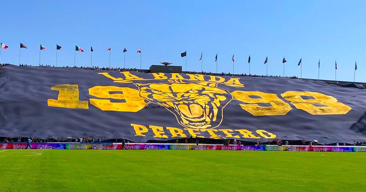 La Rebel, porra de Pumas, presentó en el duelo ante el América el “telón más grande de México”, el cual abarcó por unos minutos la parte alta y baja de la zona del pebetero.