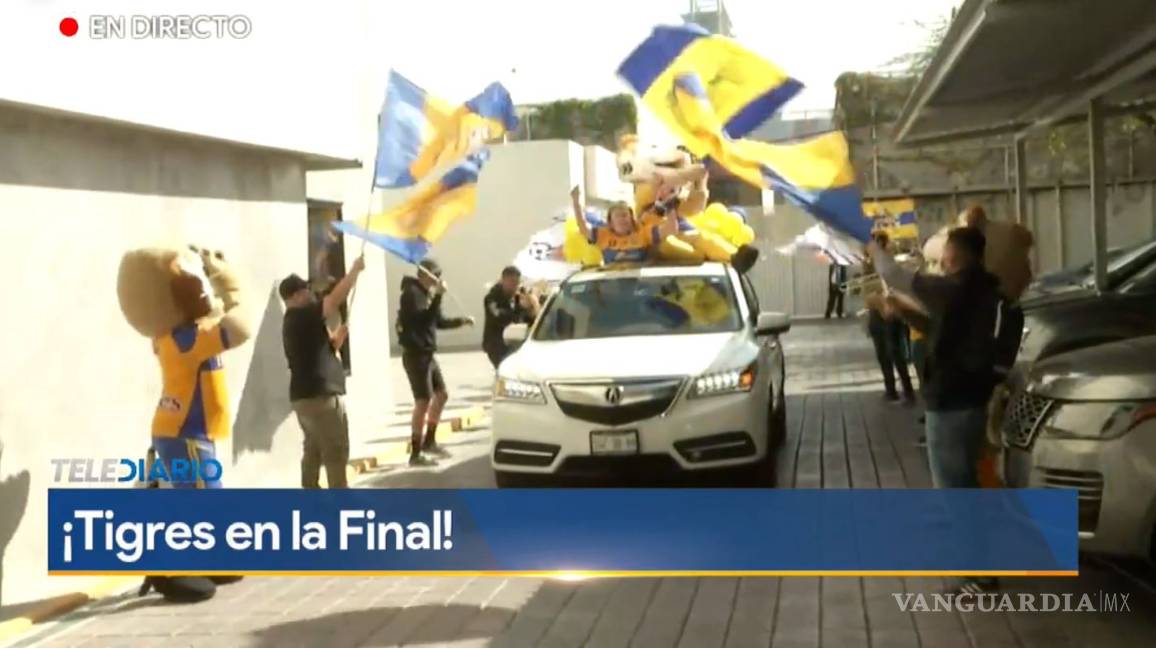 La Lic. apareció en una camioneta con la mascota de los Tigres a las afueras de Multimedios y llegó al canal junto a una caravana de fanáticos del equipo.