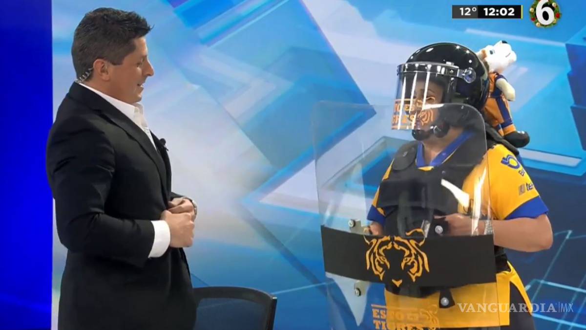 María Julia Lafuente se viste como granadera tras eliminación de Tigres en su noticiero
