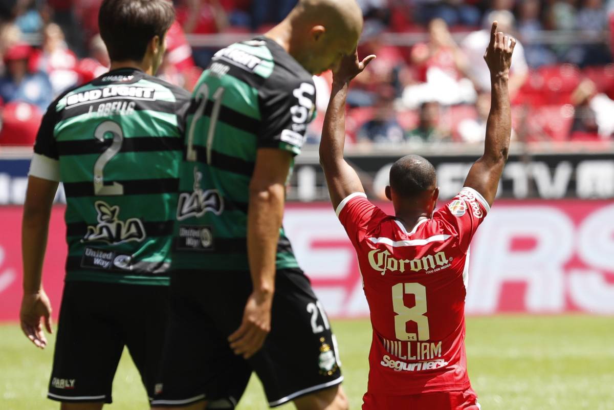 Los Diablos Rojos cortaron una buena racha que había acumulado Santos y en el Nemesio Diez le hicieron ver su suerte, ganando 2-1.