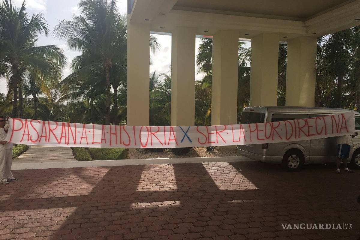 Un pequeño grupo de aficionados fue removido del hotel donde se realiza el draft de la Liga MX luego de mostrar pancartas y mantas en contra de la directiva de Chivas.