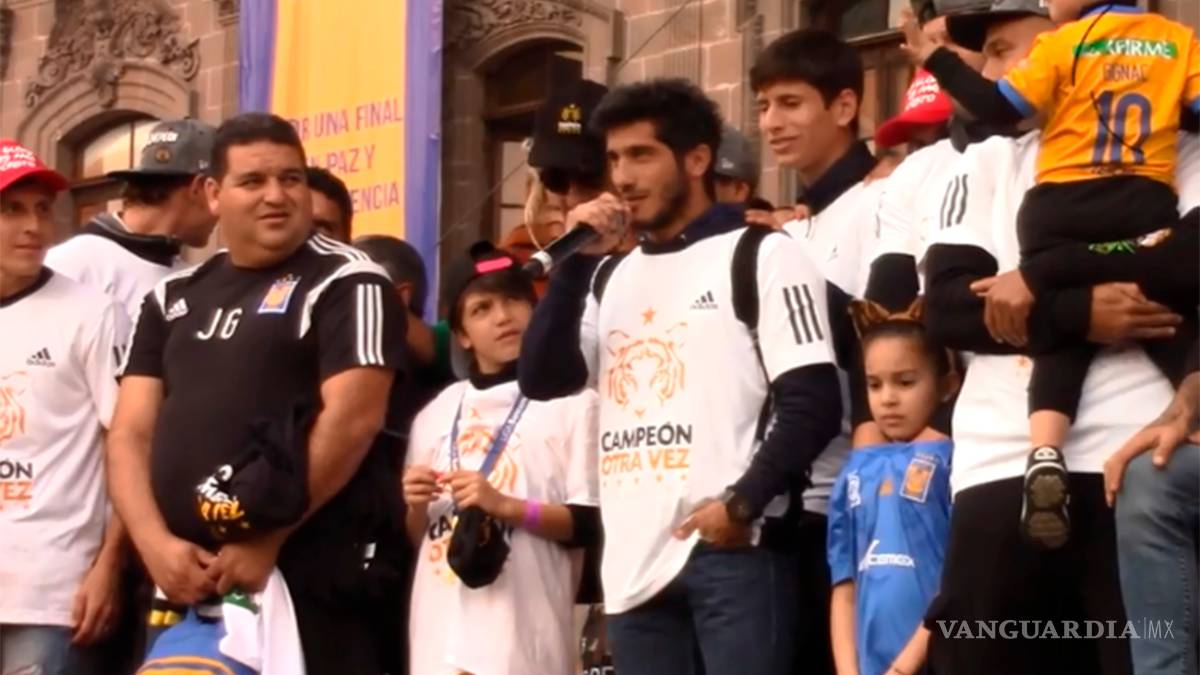 Damián Álvarez ha sido el tema en Tigres en las últimas semanas por su retiro, pero la gente no quiere que deje al equipo y se lo demostraron este lunes en el festejo en la Macroplaza, el momento emotivo del festejo del equipo.