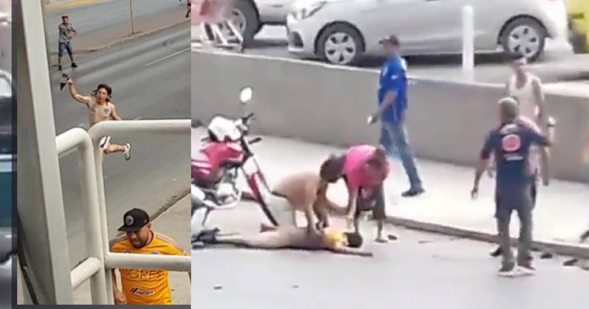 Fue en la avenida Aztlán, cerca de la línea del metro, donde integrantes de las porras entre Monterrey y Tigres se encontraron para iniciar una batalla campal, encendidos por el duelo que disputarían más tardes sus equipos.