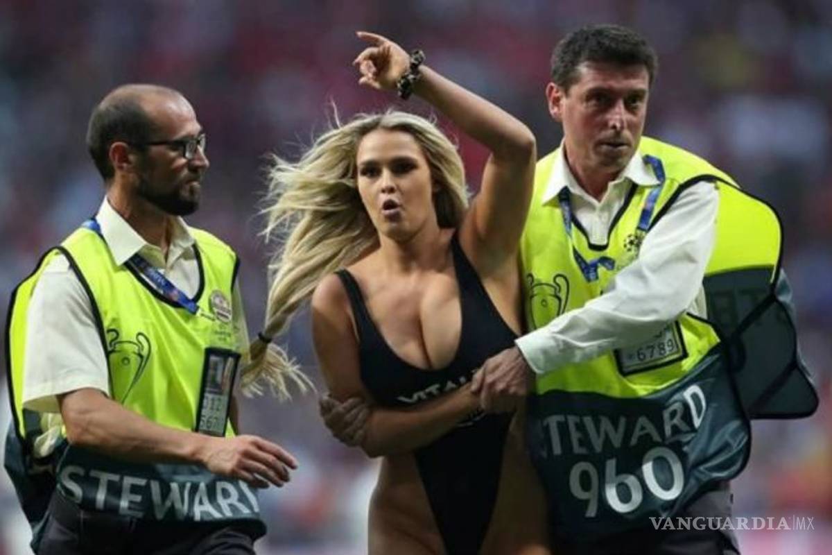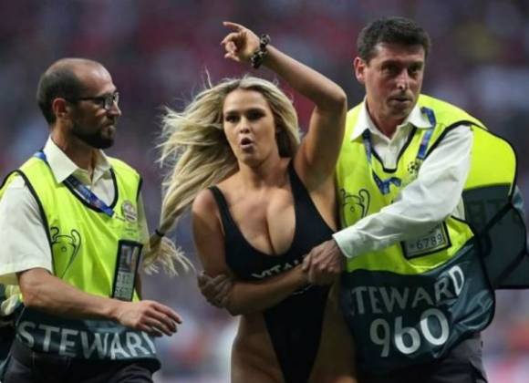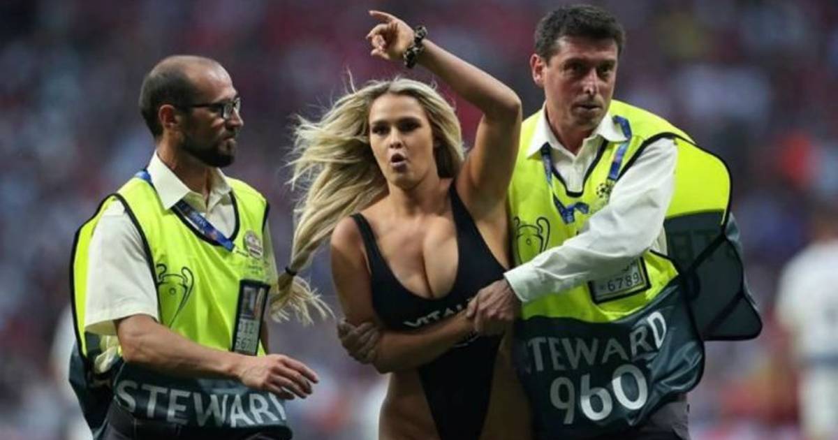 Kinsey Wolanski, la chica que cobró fama en la final de la Champions League al invadir el terreno de juego, volvió a salir semidesnuda, en honor a Kobe Bryant durante una competencia de esquí en Austria.