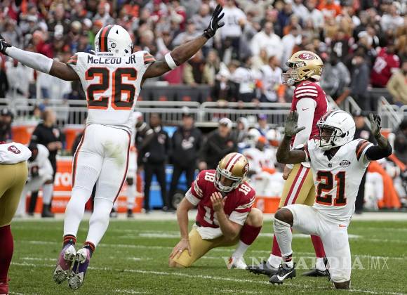 Dustin Hopkins convirtió cuatro goles de campo por los Browns (3-2), el último con 1:40 minutos en el reloj, para coronar una serie ofensiva que recibió una ayuda con una dudosa marcación de una rudeza innecesaria en contra de San Francisco (5-1).