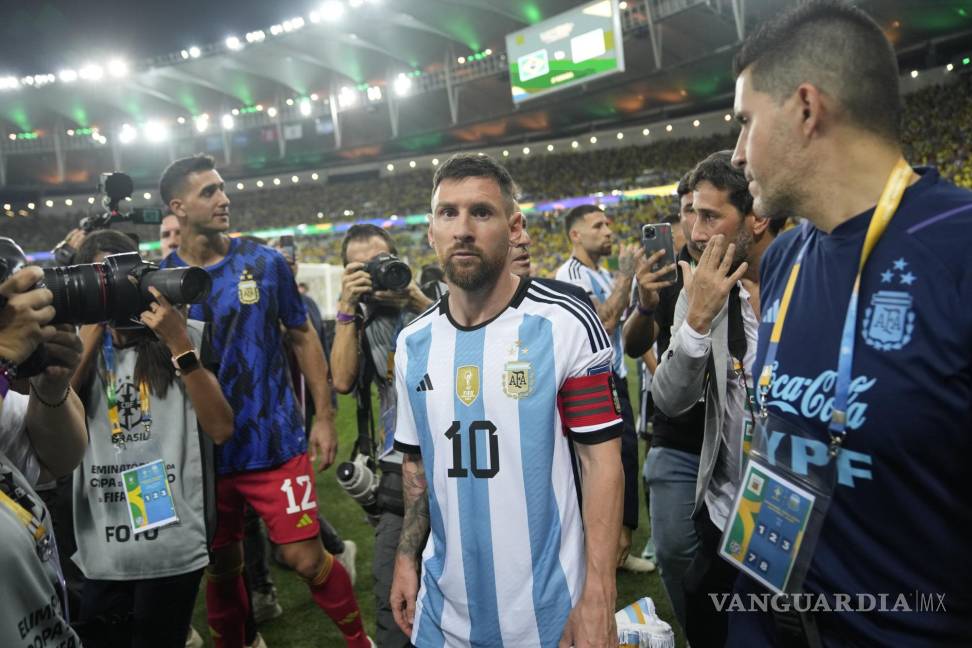 RÍO DE JANEIRO.— Lionel Messi lideró a la selección de Argentina al retirarse del campo de juego rumbo al vestuario tras una gresca entre hinchas en Brasil, y que provocó que el partido por las eliminatorias de la Copa Mundial comenzara el martes con un retraso de 27 minutos en el estadio Maracaná.